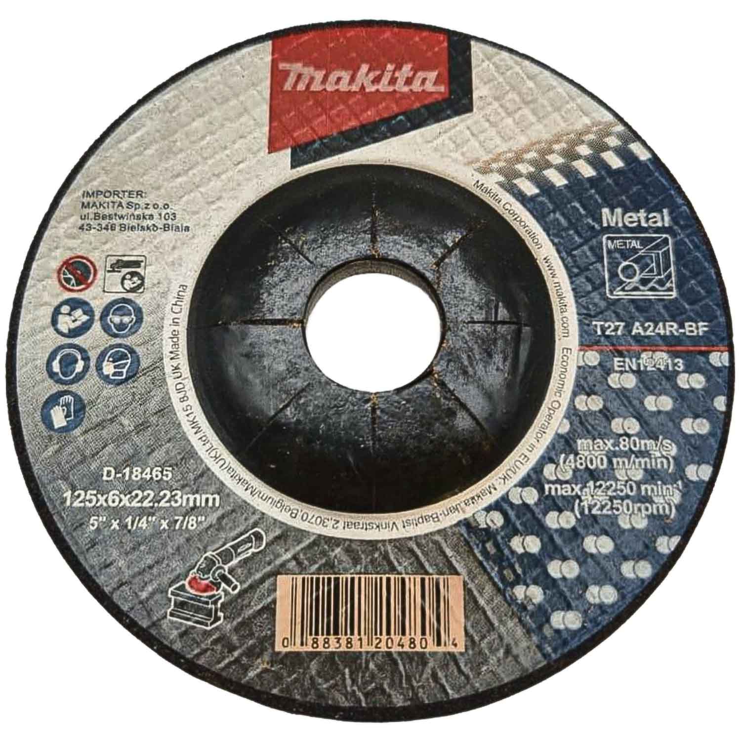 | A11.3-5 | TARCZA SZLIFIERSKA DO METALU MAKITA 125X22,2MM |